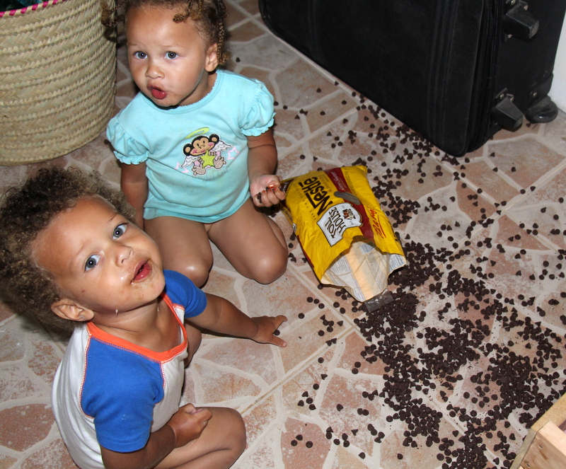 While I was frantically trying to salvage the fallen chocolate chips, Max and Elly were eating them by the handfuls. I’m glad Daddy is around tonight in case there are any upset tummies to manage.