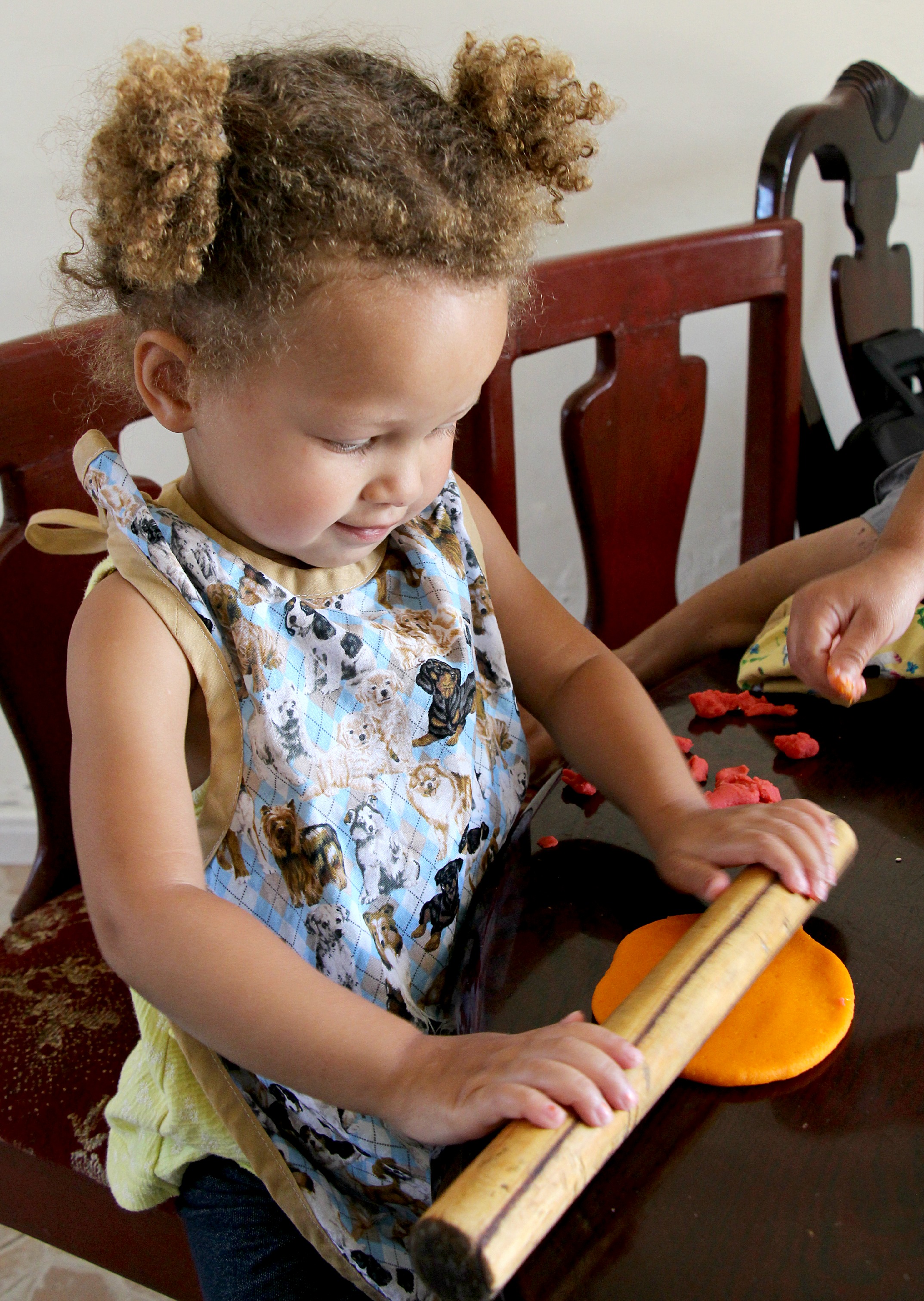 My intention had been to use the play dough for afternoon play time, but since they were there and the dough was ready we got started right away.