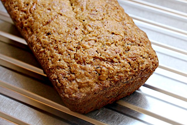Actually, the idea came to me last night to make zucchini bread. There were three small zucchini in the fridge that needed to be used up. I considered zucchini brownies, but I have made those before and I wanted to try something new. I fired up the laptop, logged on to my Pinterest bread board and pulled up this recipe. (Stay tuned for another post someday–perhaps soon–when I try the Amish Cinnamon Bread recipe I also have pinned there.)