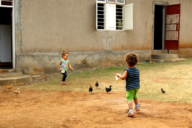 The drive to the shamba is a little more than an hour. Once we got there it was only a matter of minutes before Kakasii was ready to take Max and Elly on a walk to greet the neighbors. He couldn’t wait to show off his twins! In Tanzania, the father gets all the credit for twins–nevermind I was the one who carried them for 35 weeks!