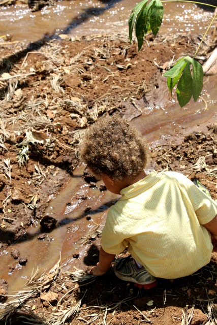 Kakasii supervised, with some help from Max and Elly. Here is Max doing quality control on the amount of mud produced by the irrigation: