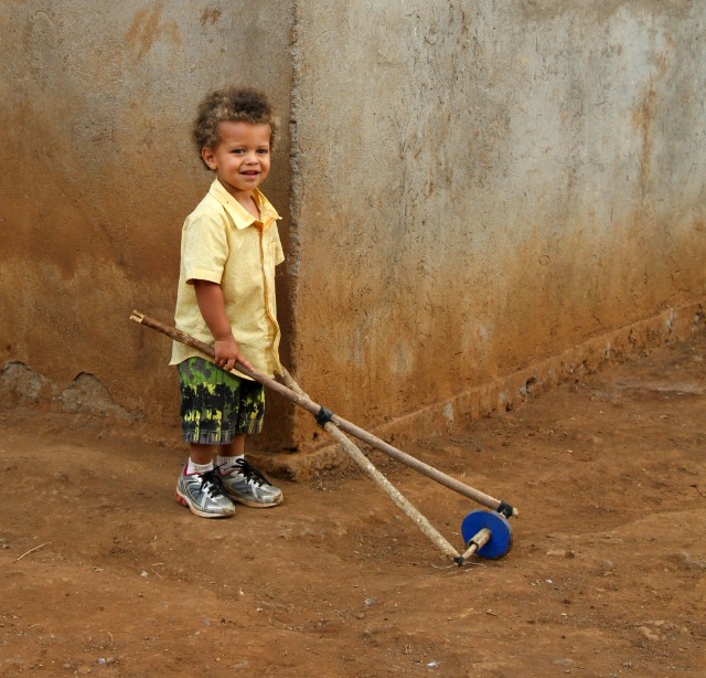 As the day went on, Max and Elly came back to the house. Max played with a homemade toy that belongs to Juma, the son of our farmhand, Waziri.