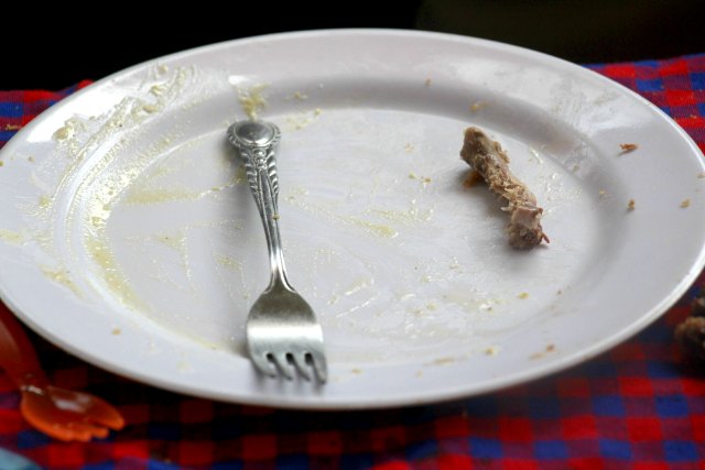 I’m guess he liked it, too, because this was his plate after eating a second serving of everything: