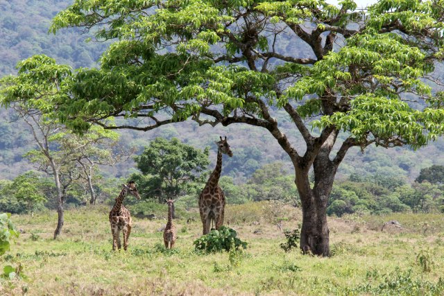 Just minutes after starting our game drive we found this giraffe family.