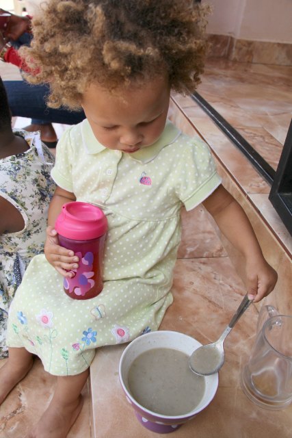 Now, lest you think Max and Elly live exotic lifestyles only eating things like goat meat and roasted bananas, note that at one point in the afternoon I found them in the living room eating french fries and watching cartoons with the other kids.